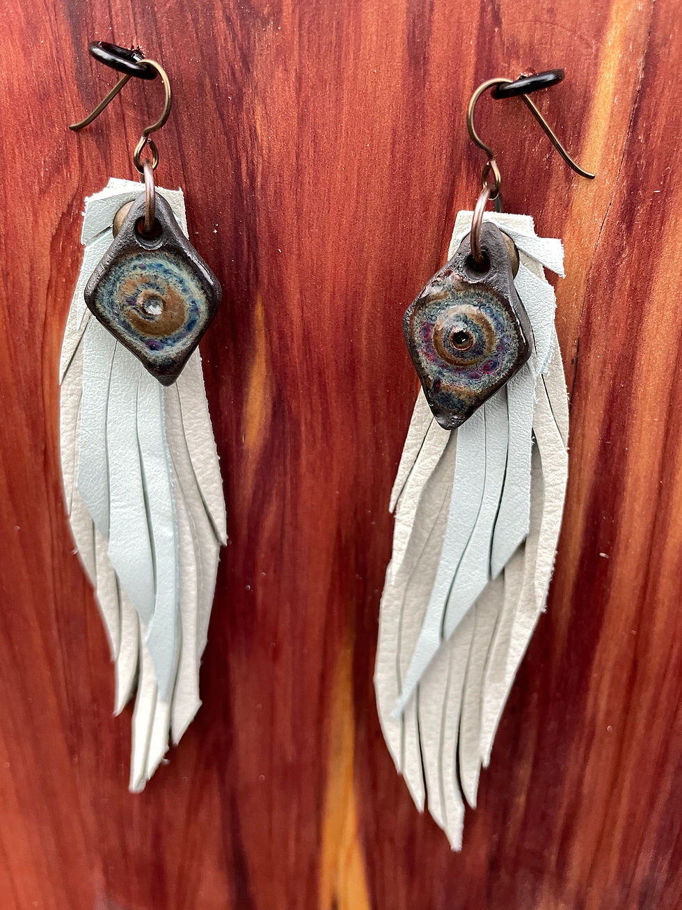 GIA: Handmade Ceramic and Recycled Leather Feather Statement Earrings